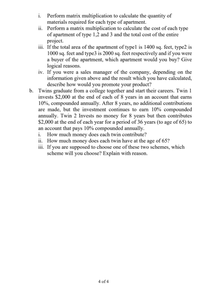 BBA BBA-BI BBA-IT PU Business Mathematics I Question Paper 2024