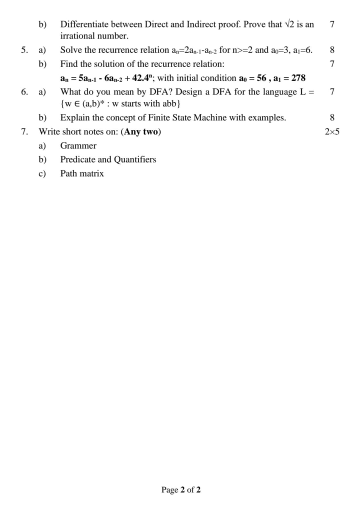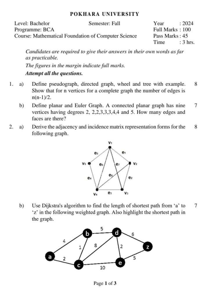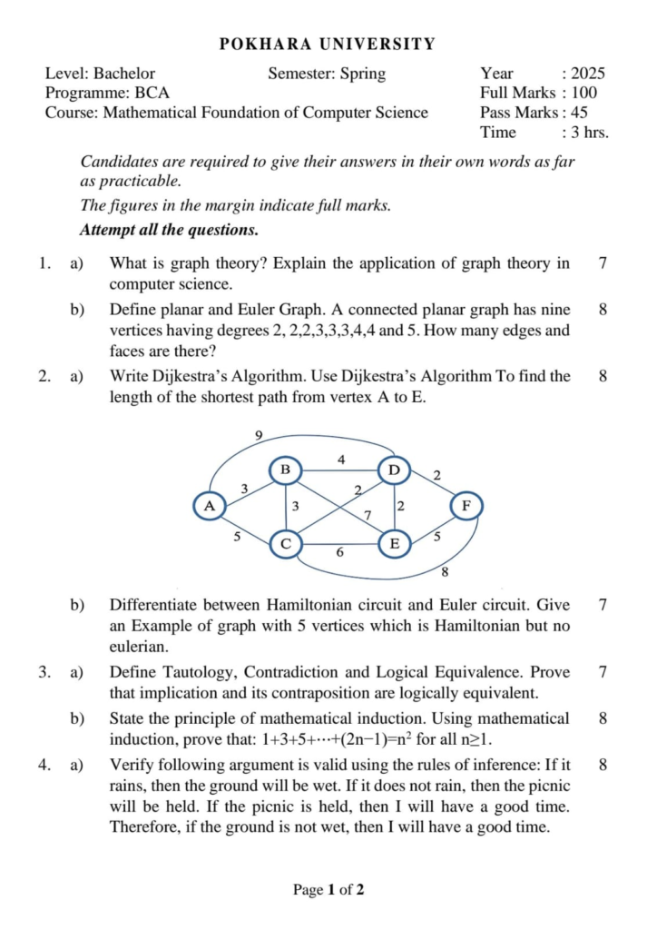 Here are the Pokhara University Pou BCA Mathematical Foundation for Computer Science Question Paper 5th Semester. This authentic resource will help you practice efficiently. Build Confidence, and Perform better in your Exam. Here is the last 5 Year Question Paper Collection. If you need a PDF of this Question paper Contact us on Social Media We will Provide you with the paper. If you have any subject Question papers share them with others through Mero Enotes.
