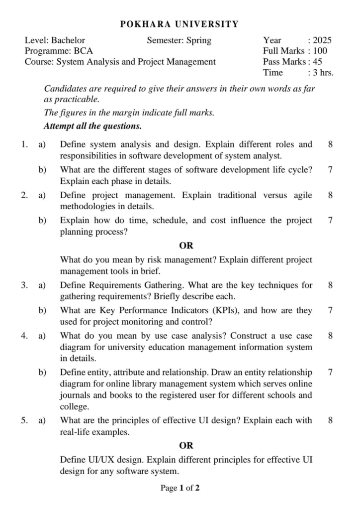 Here is the Pokhara University PU BCA SAD Question Paper 3rd Semester. This authentic resource will help you practice efficiently. Build Confidence, and Perform better in your Exam. Here is the last 5 Year Question Paper Collection. If you need a PDF of this Question paper Contact us on Social Media We will Provide you with the paper. If you have any subject Question papers share them with others through Mero Enotes.