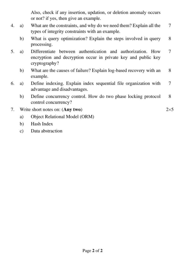 BCA Database Management System Question Paper 2024