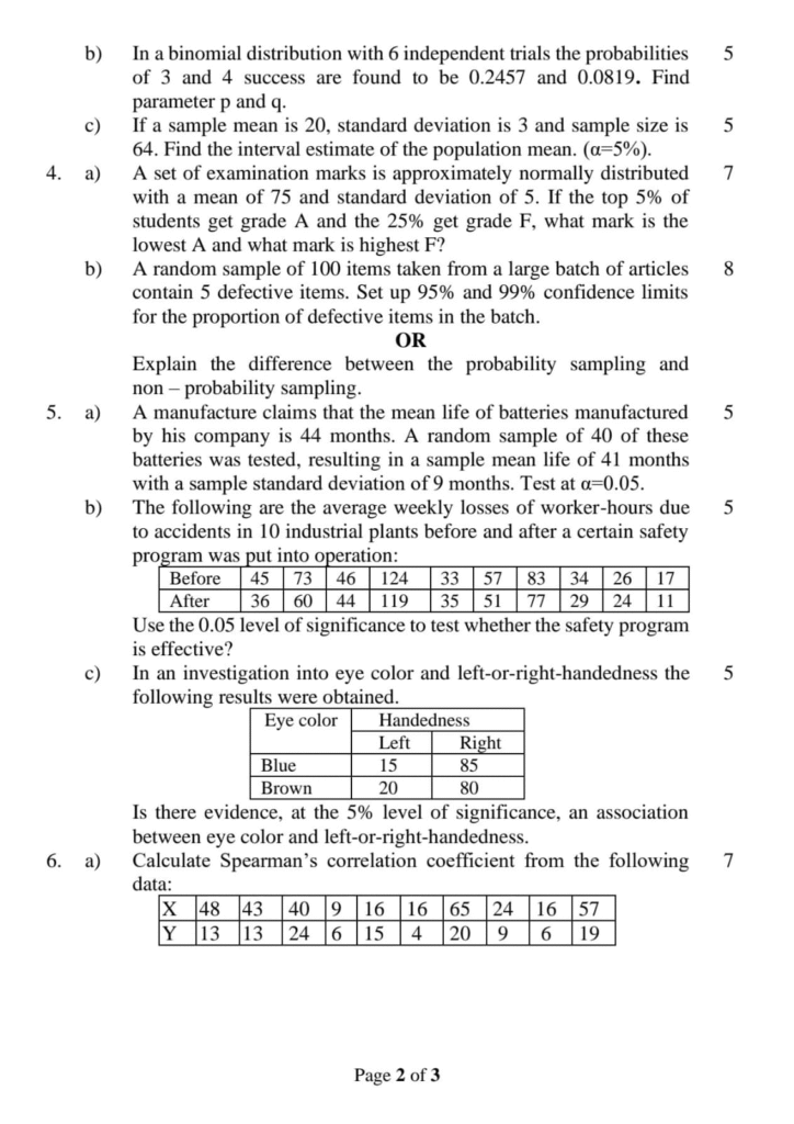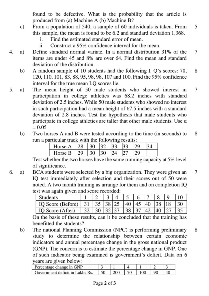 BCA Probability & Statistics Question Paper 2024